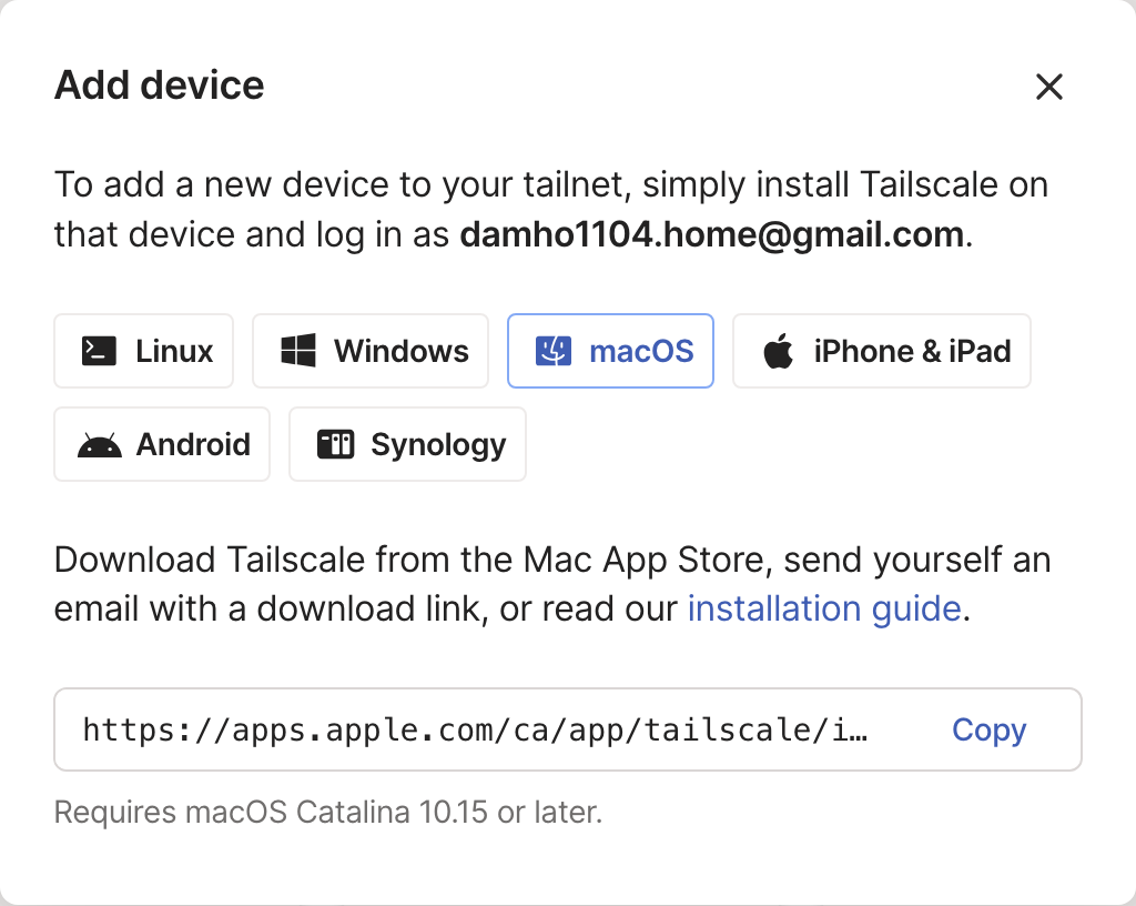 다양한 플랫폼 지원: Tailscale은 다양한 플랫폼에서 사용할 수 있으며, Windows, macOS, Linux, iOS, Android 등 다양한 운영 체제에서 동작합니다.