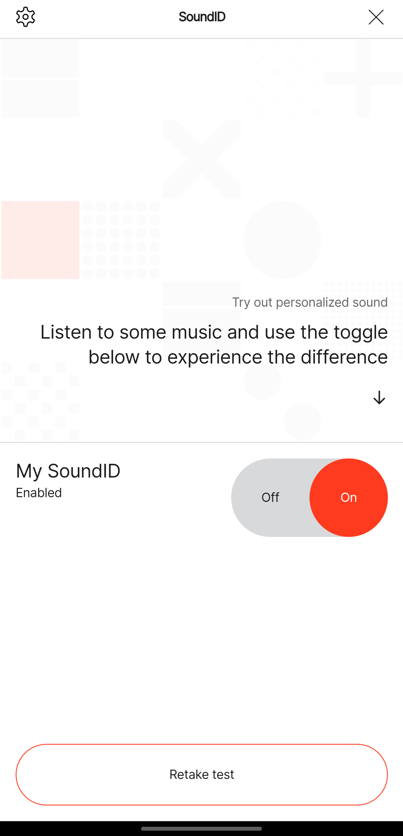 SoundID 기능은 EQ 를 사용자가 직접 조절하는게 아니라 사용자가 소리를 비교하여 선호하는 소리를 선택하는 방식으로 사운드를 조절합니다. 이 기능이 1More 에서 제공하는 핵심 기능이며 저도 SoundID 를 통해 만족스러운 구성을 설정한 상태입니다. 장르가 다른 노래 샘플 6가지 중 사용자가 1가지를 선택하여 해당 샘플이 계속 진행되며 구성이 다른 A/B 중 원하는 구성을 선택해 나가는 방식입니다. 총 6단계의 선택을 진행하면 사용자가 선택한 구성으로 맞춰 사운드를 제공합니다.