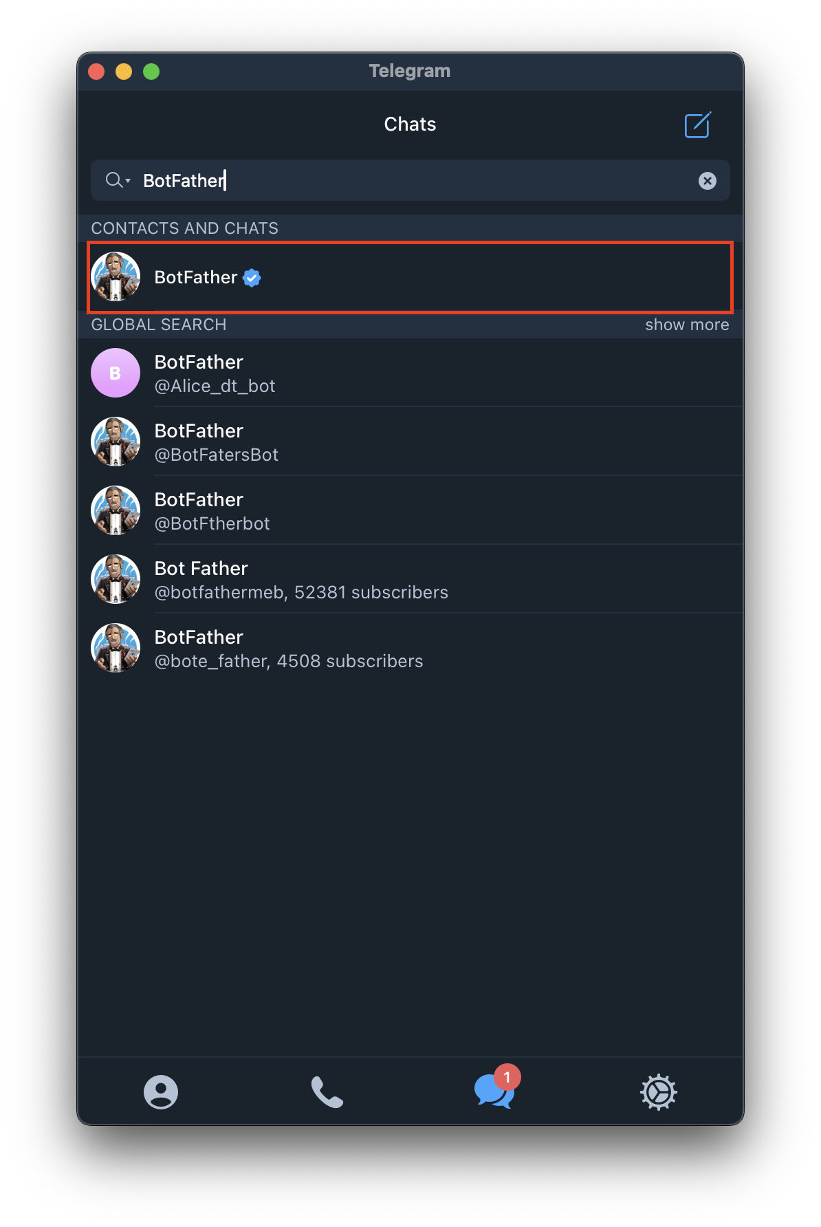 우선 텔레그램으로 접속해서 BotFather 를 통해 Bot 채팅방을 만들어야 합니다. 텔레그램 검색창에 BotFather 라고 검색합니다. 그러면 여러 결과가 나오는데 여기서 오른쪽에 체크 표시있는 것을 클릭합니다. 이제 봇 채팅방을 만들어야 합니다. 다음 과정을 거치면 됩니다.