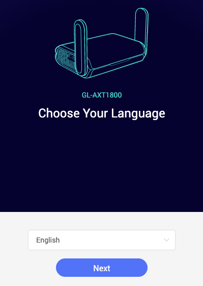최초 접속 시 다음과 같은 언어 선택 화면이 나옵니다. 한글이 없으므로 영어로 선택합니다.