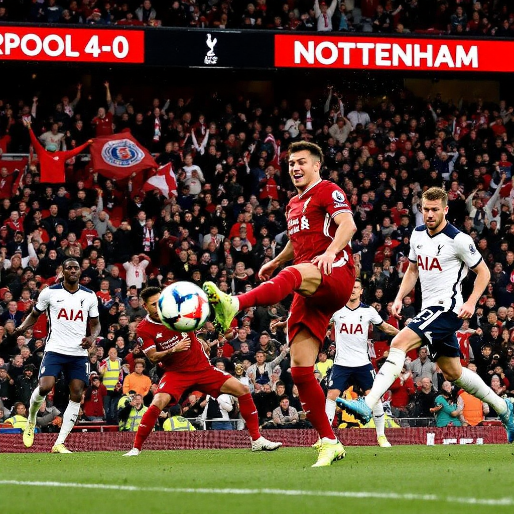 리버풀은 이날 경기에서 4-0이라는 놀라운 스코어로 토트넘을 제압했습니다. 이는 단순한 승리를 넘어 완벽한 지배력을 보여준 경기였습니다. 안필드의 열광적인 응원과 함께 리버풀 선수들은 최고의 경기력을 선보였습니다.